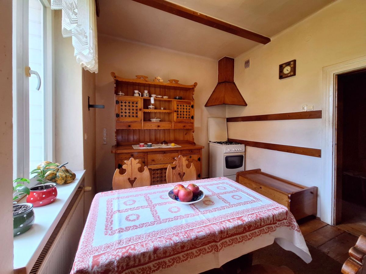 Pomieszczenia: 3 przestronne pokoje, kuchnia, łazienka i osobne wc, spiżarka, korytarz, wiatrołap. Pod częścią budynku piwnica, poddasze nieużytkowe. Pomieszczenia jasne i wysokie. Wewnątrz piękne, drewniane drzwi.