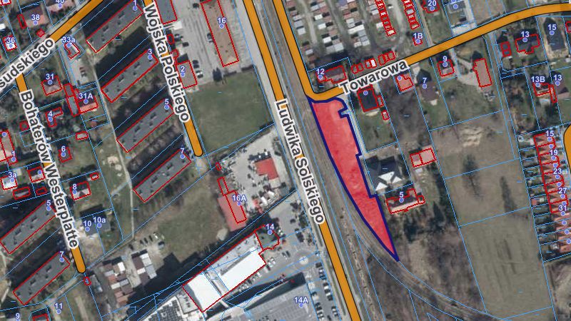Dojazd do działki drogą asfaltową, ul. Towarową.