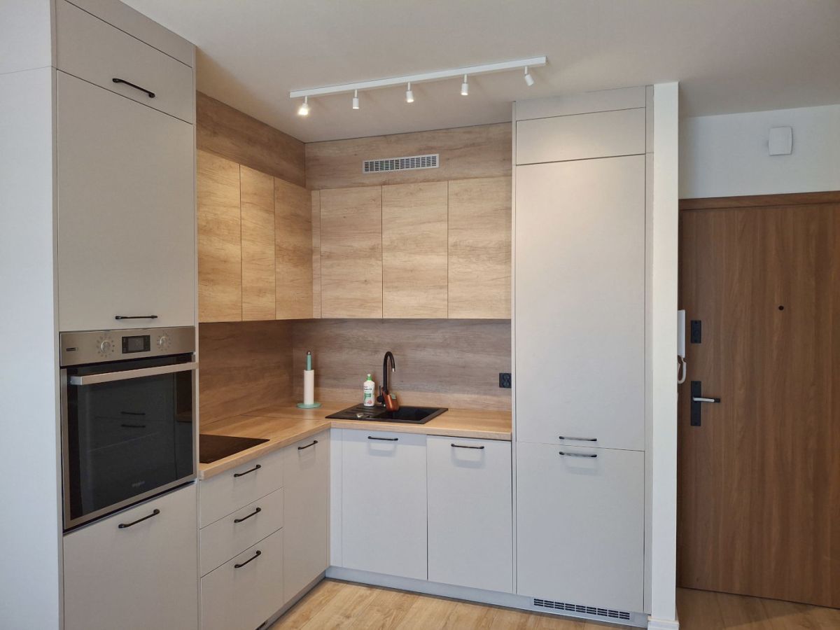 Nieruchomość jest umeblowana, gotowa do zamieszkania. Nowoczesna kuchnia jest w pełni wyposażona w urządzenia AGD : płyta indukcyjna, piekarnik, zmywarka, lodówka i wygodny stolik z krzesłami.